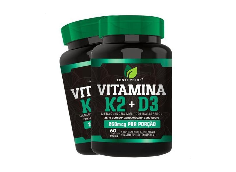O menor preço encontrado no Brasil para 2 Potes Vitamina K2 + D3 Concentrada Kit 120 Cáps - Fonte Verde atualmente é R$ 110,94.