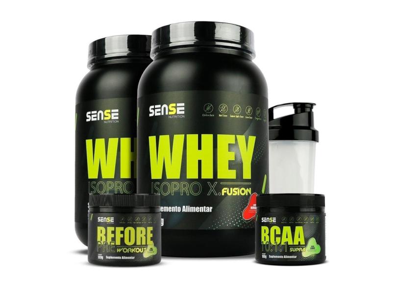 2 Whey Protein 900g + Bcaa + Pré Treino + Coqueteleira Sense-Unissex