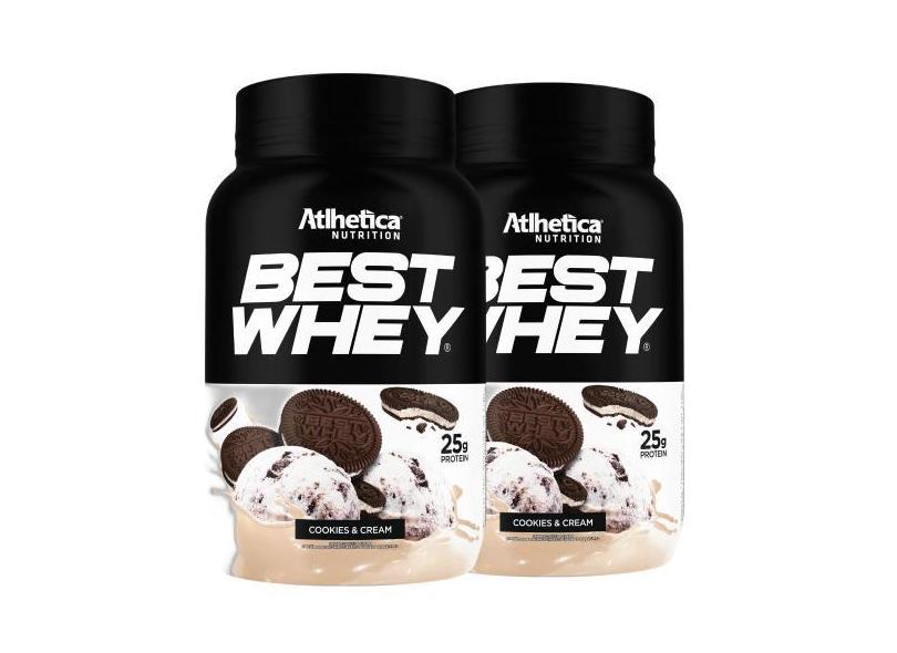O menor preço encontrado no Brasil para 2 Whey Protein Isolado Hidrolisado Cookies 900g - Atlhetica - Atlhetic atualmente é R$ 352,70.