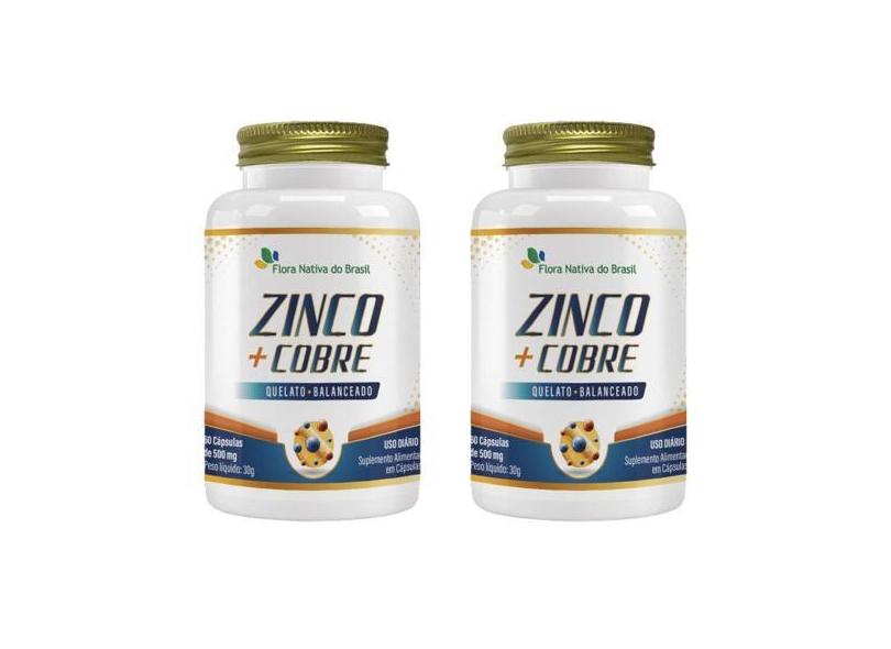 2X Zinco + Cobre Quelato 60 Cápsulas 500Mg Flora Nativa Do Brasil