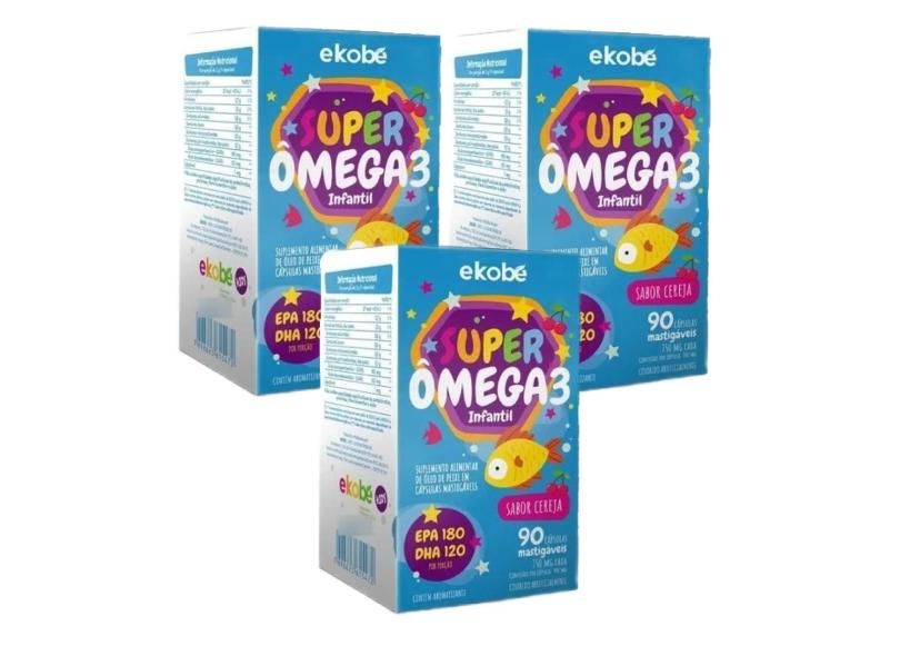 3x Super Ômega 3 Infantil- Ekobé Kids- 90 Caps. Mastigáveis