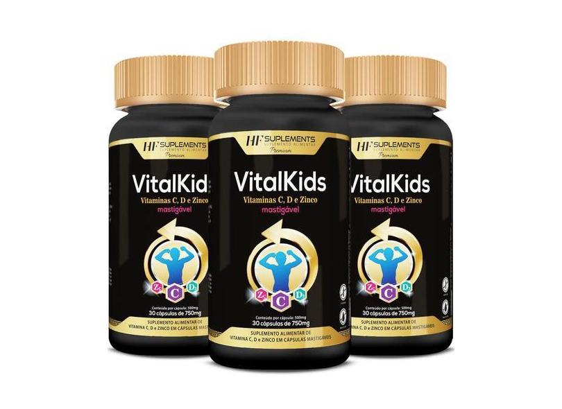 3X Vitalkids Vitamina C D Zinco Infantil 30Caps Mastigavel - Hf Suplem