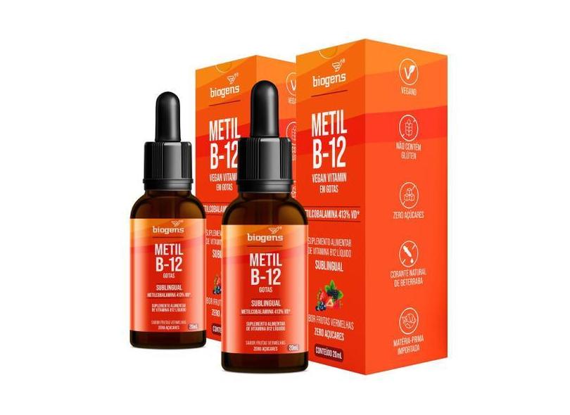 Biogens Kit 2X Metil B12 Em Gotas 20ml Frutas Vermelhas