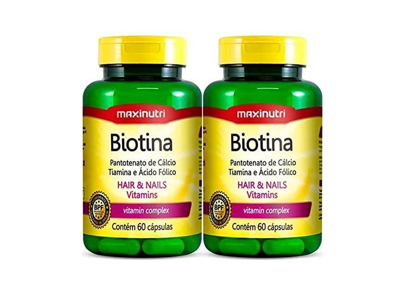 O menor preço encontrado no Brasil para Biotina - 2 unidades de 60 cápsulas - Maxinutri atualmente é R$ 60,00.
