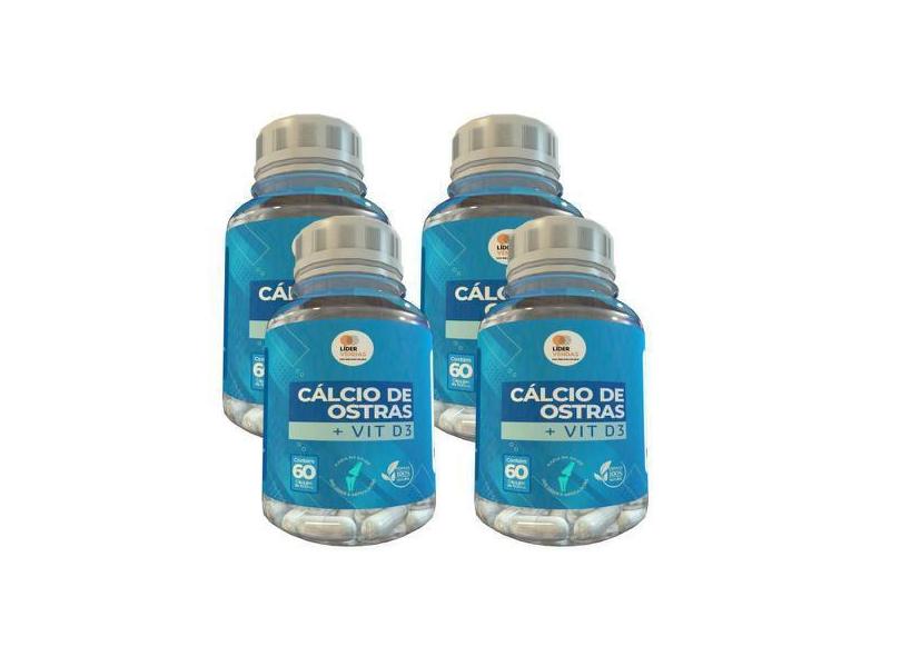 Cálcio De Ostra - 60 Caps 500Mg Kit Com - 4 Potes - Lider Vendas