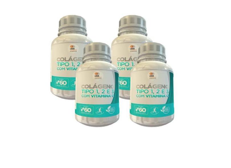O menor preço encontrado no Brasil para Colágeno tipo 1, 2 e 3 com vitamina C 500mg 60 cáps 4 potes atualmente é R$ 117,00.