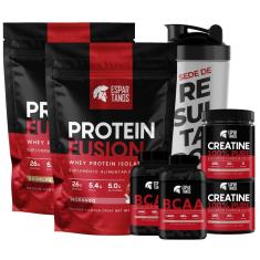Combo Duplo Whey Fusion + 2x Bcaa + 2x Creatina + Shaker-Unissex