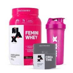 O menor preço encontrado no Brasil para Combo Whey Feminino 900g, Creatina 150g e Coqueteleira 700mL - Max Titanium-Feminino atualmente é R$ 207,02.