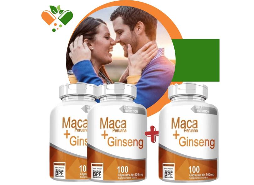 COMPRE 2 LEVE 3 POTES MACA PERUANA C/ GINSENG 500MG 100 CáPSULAS 4Elementos