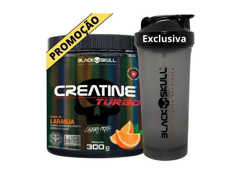 Creatina Monohidratada Turbo 300G Black Skull + Coqueteleira Fumê 600M