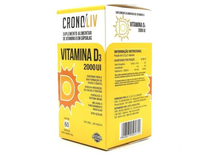 O menor preço encontrado no Brasil para Cronoliv Vitamina D3 2000Ui 60 Cápsulas atualmente é R$ 55,73.