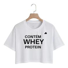 Cropped Top T-shirt Academia Frase Treino Builder Protein-Feminino