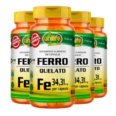 O menor preço encontrado no Brasil para Ferro Quelato 500mg Unilife 60 Cápsulas 4un atualmente é R$ 87,23.