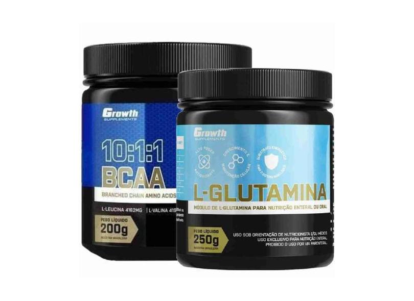 Glutamina Pura 250G + Bcaa 10:1:1 200G Em Pó Growth
