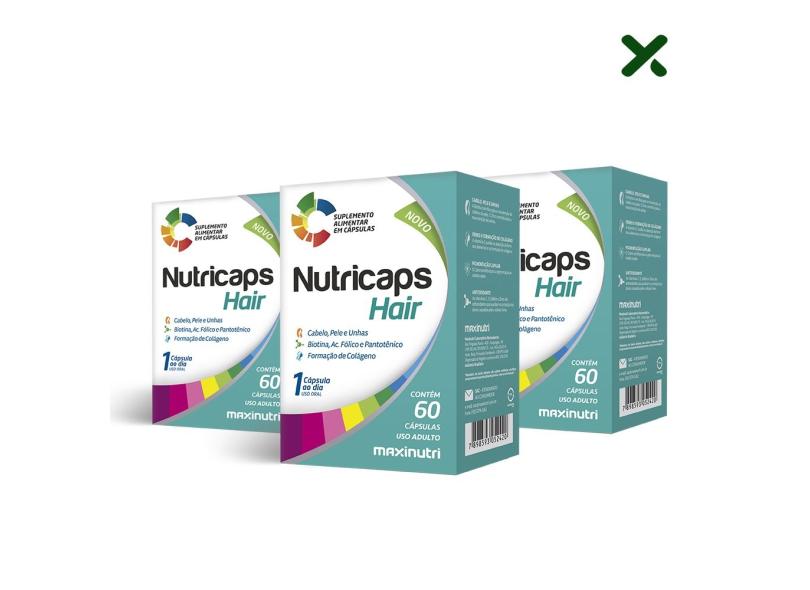 Kit 03 Nutricaps Hair Polivitamínico 60 Cápsulas Loja Maxinutri