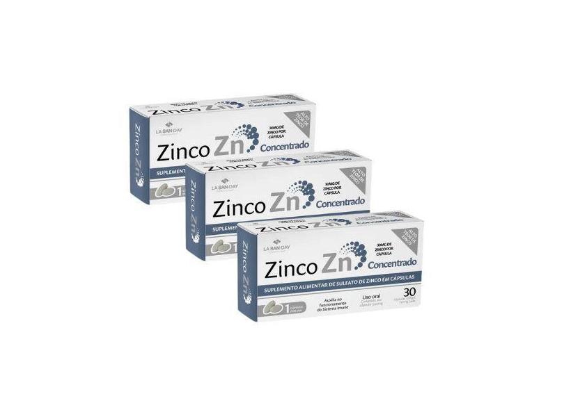 Kit 03 Suplemento Zinco Concentrado Com 30 Cps - La San Day
