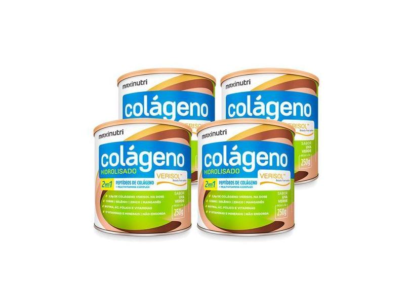 O menor preço encontrado no Brasil para Kit 04 Colageno 2 Em 1 Verisol Lata 250G Uva Verde Maxinutri atualmente é R$ 287,00.