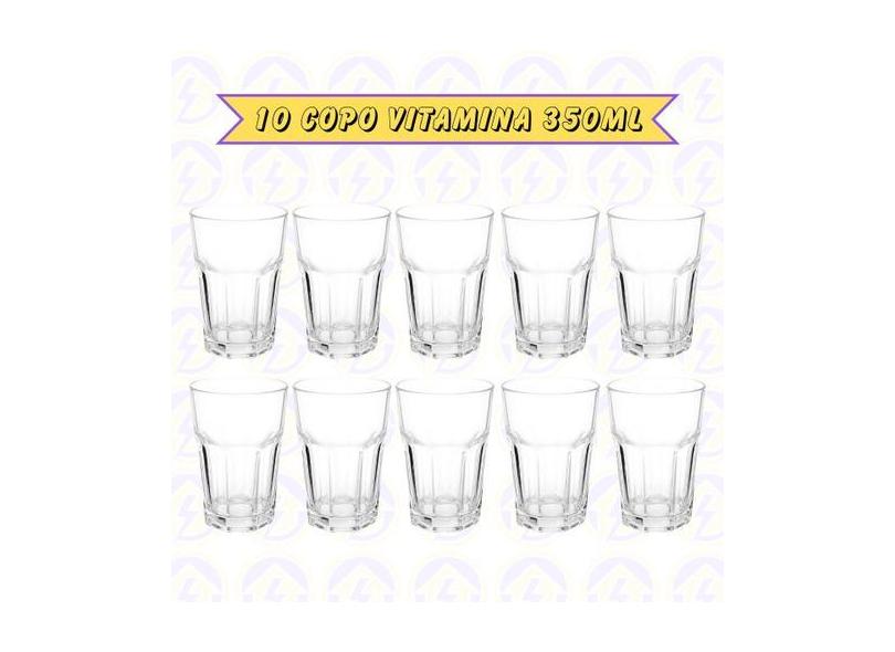 Kit 10 Copo De Vidro Resistente 350ml Transparente Vitamina - Praticas