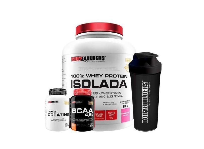 O menor preço encontrado no Brasil para Kit 100% Whey Protein Isolado 2Kg+ Bcaa 4,5 100G - Bodybuilders atualmente é R$ 700,25.