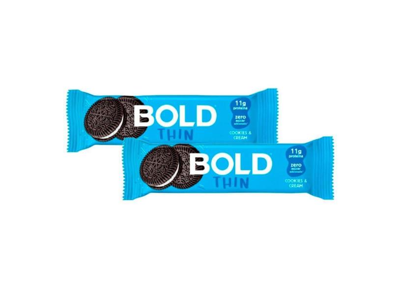 Kit 2 Barra de Proteína Bold Thin Sabor Cookies & Cream 11g de Proteína Zero Açúcar com 40g