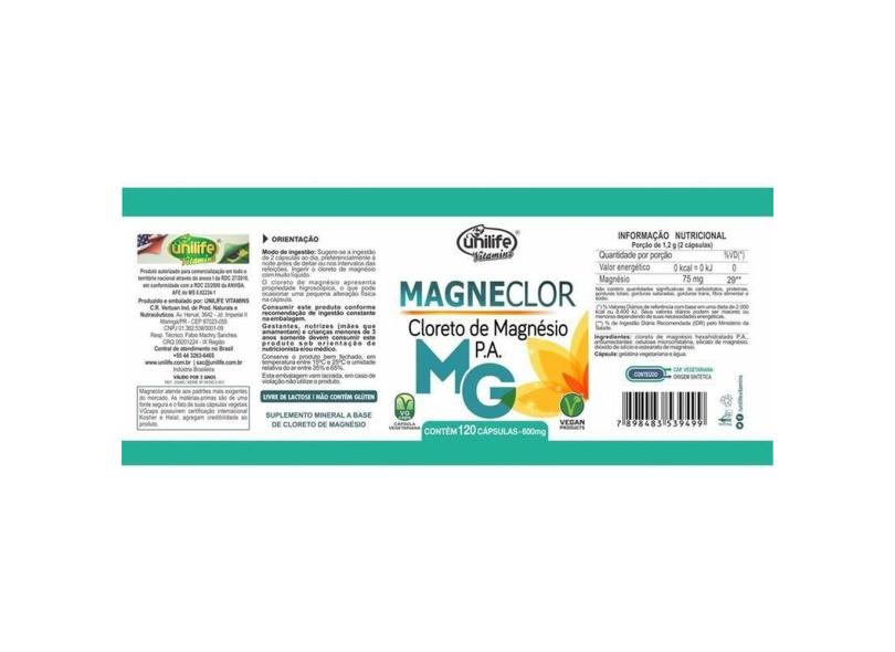 Kit 2 Cloreto de Magnésio P.A Magneclor Unilife 120 Cápsulas