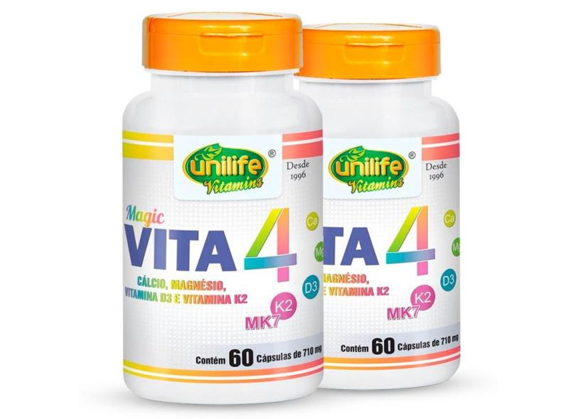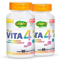 O menor preço encontrado no Brasil para Kit 2 Vita4 Cálcio Magnésio Vitamina D e K2 Unilife atualmente é R$ 63,90.