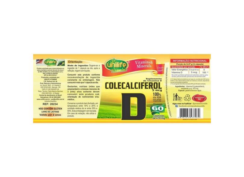 O menor preço encontrado no Brasil para Kit 2 Vitamina D Colecalciferol 60 Cápsulas Unilife atualmente é R$ 46,89.