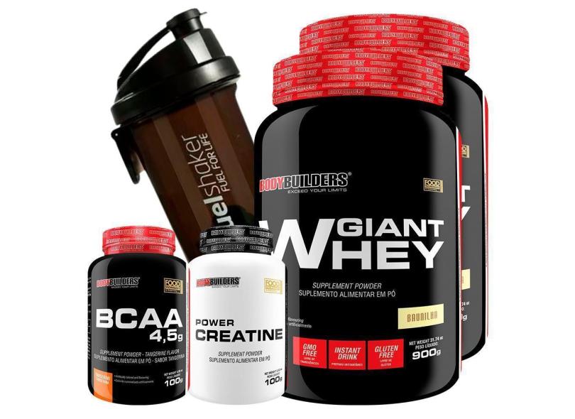 O menor preço encontrado no Brasil para Kit 2X Giant Whey 900G Baunilha Bcaa 100G Creatina 100G atualmente é R$ 213,94.
