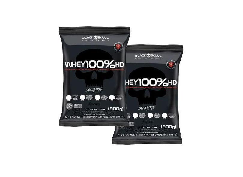 Kit 2X Whey Protein Chocolate E Morango 900G Black Skull