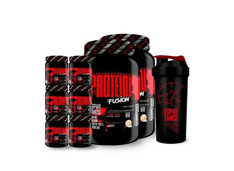 Kit 2X Whey Protein Fusion + 2X Bcaa + 2X Creatina + 2X Glutamina + Co