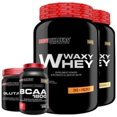 O menor preço encontrado no Brasil para KIT - 2x Whey Protein Waxy Whey 2kg + Glutamina 300g + BCAA 1800 120 Cápsulas - Bodybuilders-Unissex atualmente é R$ 161,40.