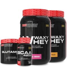 O menor preço encontrado no Brasil para KIT 2x Whey Protein Waxy Whey 2kg + Glutamina 300g + BCAA 4800 120 Cápsulas - Bodybuilders (Morango e Paçoca) atualmente é R$ 199,90.