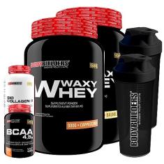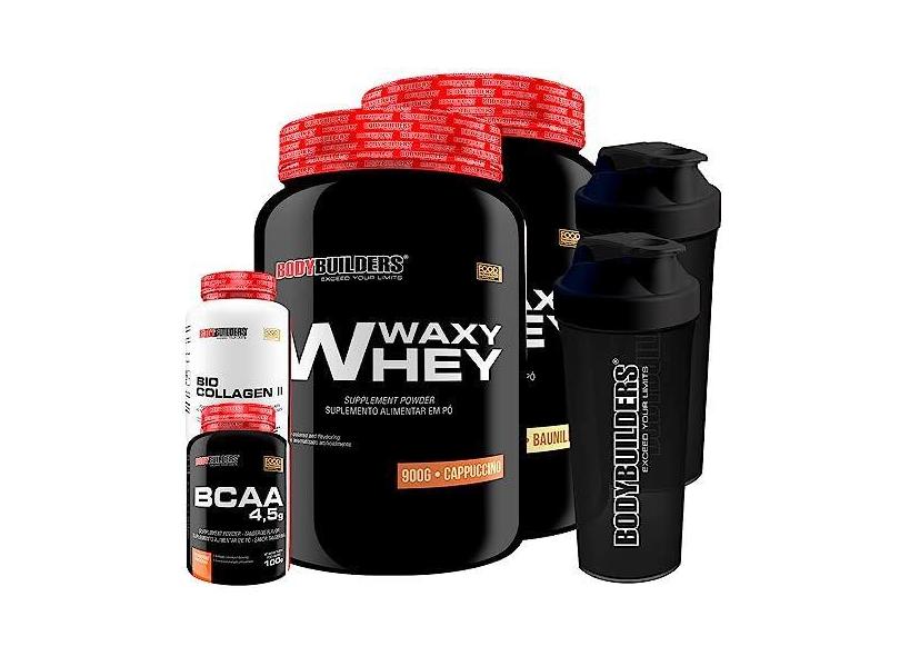 O menor preço encontrado no Brasil para Kit 2x Whey Protein Waxy Whey 900g + Bio Colagen II 200g + BCAA 100g + 2x Coqueteleira - Bodybuilders (Baunilha e Cappuccino) atualmente é R$ 189,90.