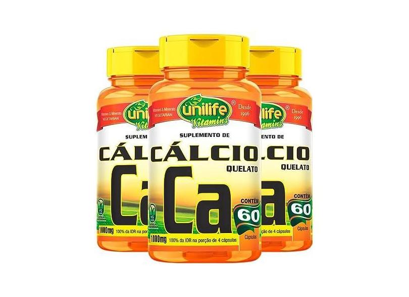O menor preço encontrado no Brasil para Kit 3 Cálcio Quelato CA 60 cápsulas Unilife atualmente é R$ 91,06.