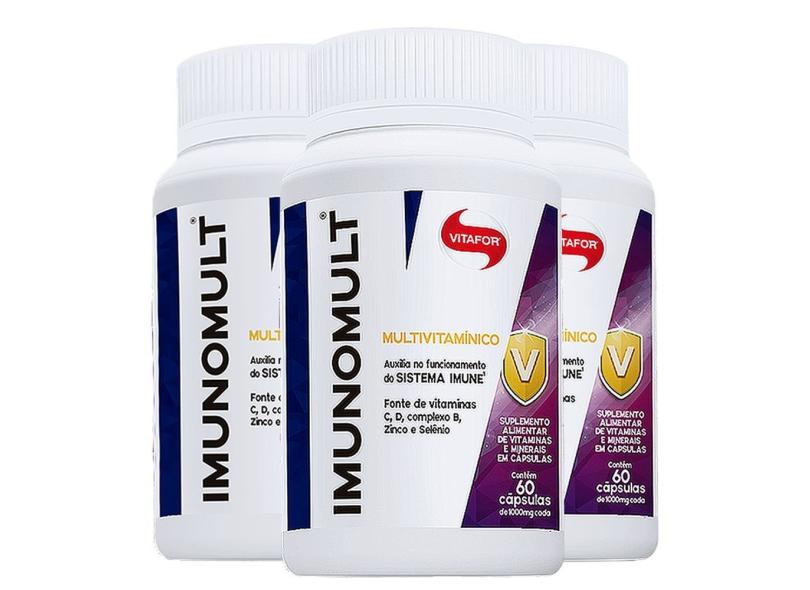 O menor preço encontrado no Brasil para Kit 3 Imunomult Multivitamínico Vitafor 60 Cápsulas atualmente é R$ 257,97.