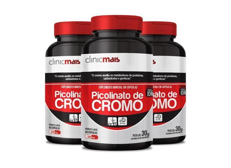 Kit 3 Picolinato De Cromo 500Mg Chá Mais 60 Cápsulas