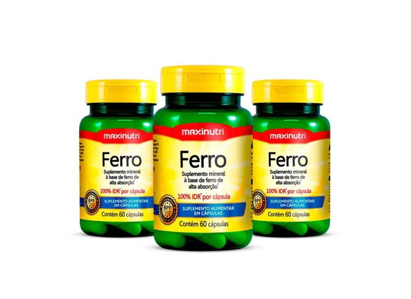 O menor preço encontrado no Brasil para Kit 3 Suplemento Mineral Ferro 100% Idr Com 60 Cap Maxinutri atualmente é R$ 66,00.