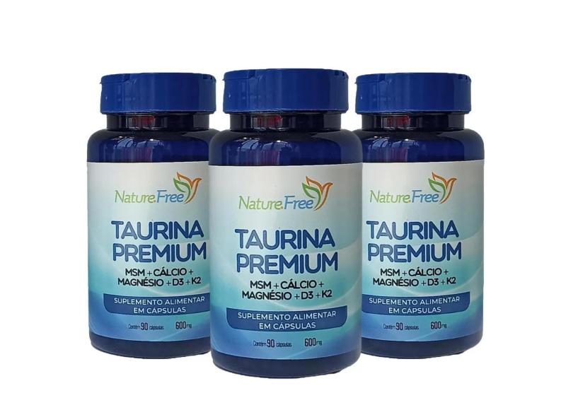 Kit 3 Taurina Premium (Msm + Cálcio + Magnésio + D3 + K2) 90 Cápsulas 600Mg