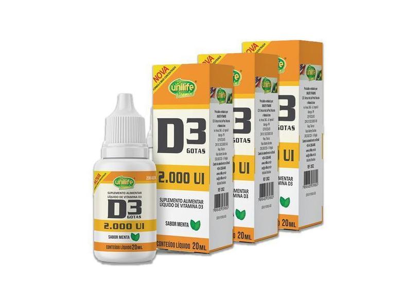 O menor preço encontrado no Brasil para Kit 3 Vitamina D3 2.000 Ui Unilife Menta 20ml atualmente é R$ 110,96.