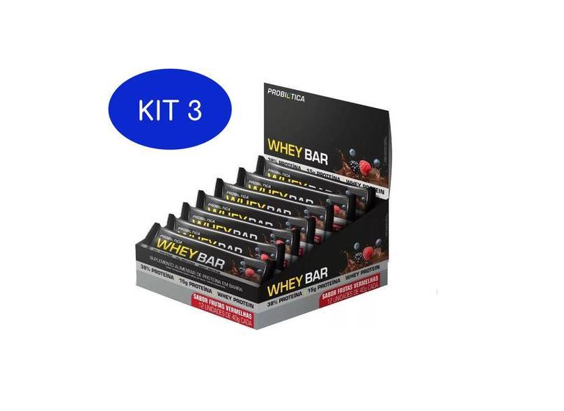Kit 3 Whey Bar Probiótica Caixa Com 12 Unidades - Frutas - Probiotica