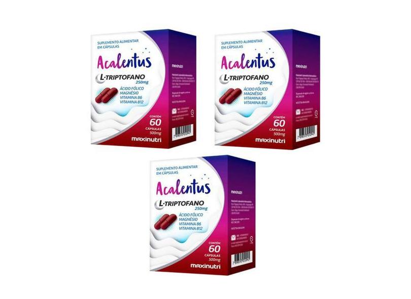 O menor preço encontrado no Brasil para Kit 3X Acalentus L-Triptofano 250Mg 60 Cápsulas Maxinutri atualmente é R$ 145,00.