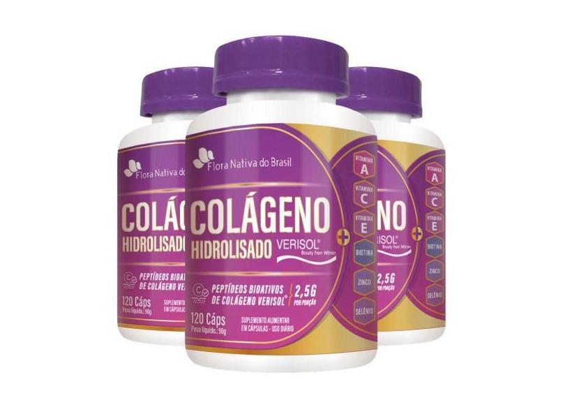 Kit 3X Colágeno Verisol Vitaminas 120 Cápsulas Flora Nativa - Flora Na