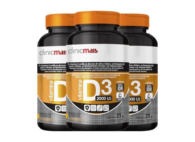 KIT 3x Vitamina D3 2000ui - 30 Cápsulas - ClinicMais