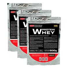 O menor preço encontrado no Brasil para Kit 3x Whey Protein 500g - Bodybuilders Sabor Chocolate atualmente é R$ 89,90.