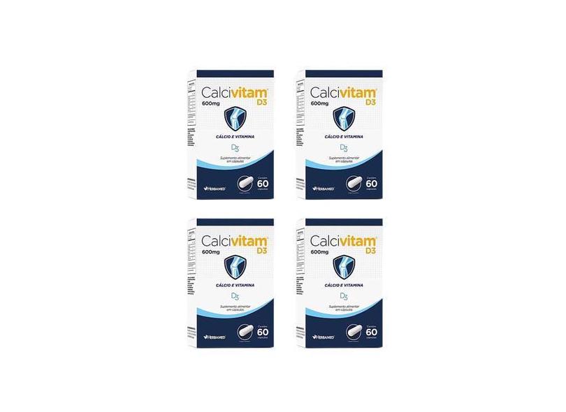 Kit 4 Calcivitam D3 Calcio E Vitamina D3 60 Caps - Herbamed