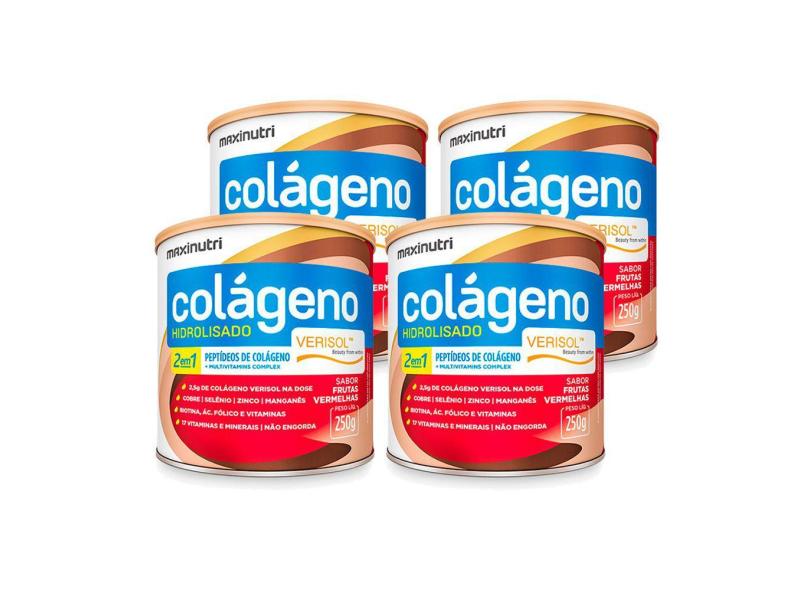 Kit 4 Colágeno em Pó 2 em 1 Verisol 250g Frutas Vermelhas