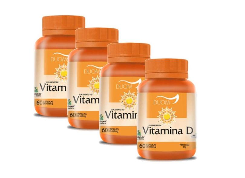 O menor preço encontrado no Brasil para Kit 4 Vitamina D 60 Cápsulas 450Mg Duom atualmente é R$ 110,29.
