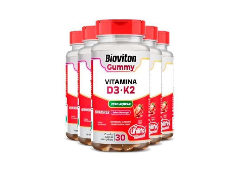 O menor preço encontrado no Brasil para Kit 5 Gummy Vitamina D3 + K2 Morango Unilife 30 gomas atualmente é R$ 184,49.