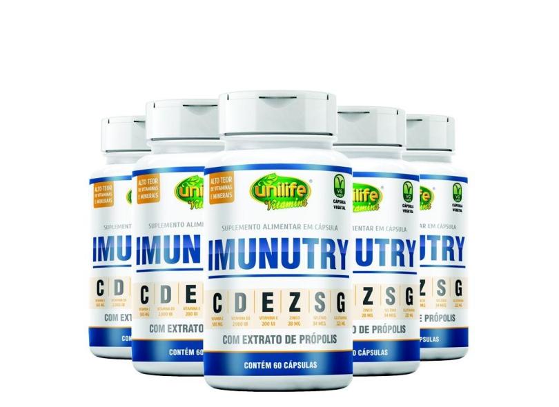 O menor preço encontrado no Brasil para Kit 5 Imunutry Zinco, Selênio, Glutamina, Própolis e Vitaminas C, D e E Unilife 60 cápsulas atualmente é R$ 272,95.