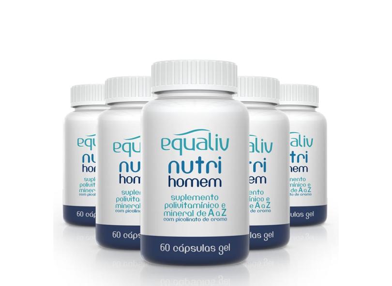 O menor preço encontrado no Brasil para Kit 5 Nutri Homem Polivitamínico de A a Z Equaliv 60 cápsulas gel atualmente é R$ 326,90.